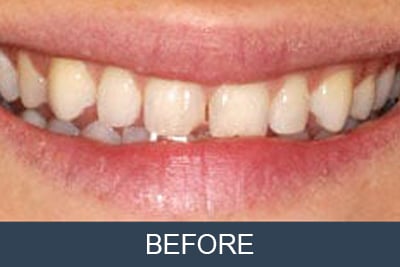 Close-up of a person's smile before dental treatment, showing slightly uneven and discolored teeth.
