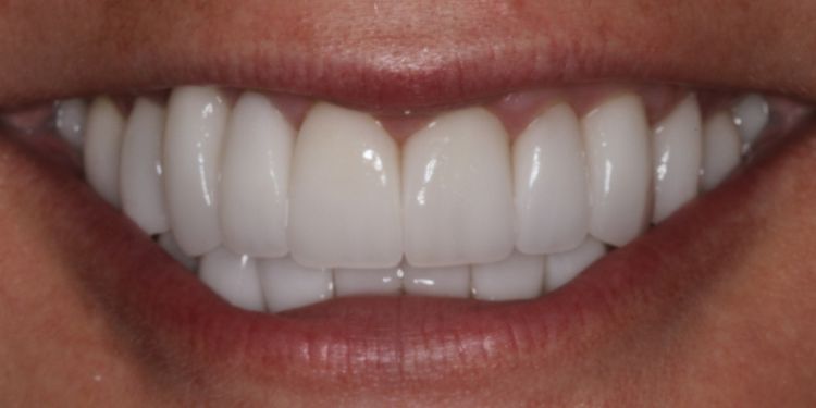 Dr. Mandy Grimshaw led Kelly’s transformation with a carefully sequenced, full-mouth rehabilitation plan. Her treatment began with bite alignment correction using an orthotic appliance, followed by a full-mouth reconstruction to restore function and aesthetics.